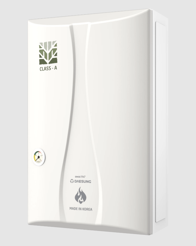 Daesung CLASS А MAX 50 — настенный газовый котёл для отопления частных домов, коттеджей, загородных домов, дач площадью до 550 кв. м, а также для организации горячего водоснабжения. Некоторые характеристики: Мощность: 50 кВт. 24 Диаметр дымохода: 75/75. Расширительный бак: есть, на 5,30 л. Напряжение сети: 220 В. Потребляемая мощность: 210 Вт. Отапливаемая площадь: до 550 кв. м. 1 Отапливаемый объём: до 1540 м³. Минимальная температура горячей воды: 37 °C. Максимальная температура горячей воды: 60 °C. Производительность ГВС (Δt=25C): 28,7 л. Производительность ГВС (Δt=35C): 20,5 л. Режим «Лето»: есть. 1 Габариты (ВхШхГ): 729x471x349. Масса НЕТТО: 44 кг. По умолчанию котёл работает на природном магистральном газе, но при необходимости его можно переоборудовать для работы на сжиженном газе, для этого необходимо приобрести комплект жиклеров